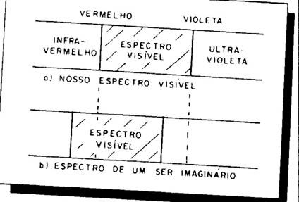 o sol, e que, portanto, o espectro visível tenda mais para comprimentos de onda maiores, os seres podem ser capazes de ver uma parte do infravermelho que não vemos, e por outro lado, serem cegos para o violeta.