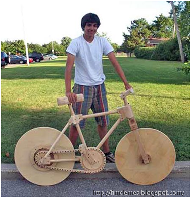 o estudante Marco Facciola de 16 anos de idade, construiu uma bicicleta toda em madeira. Eu estou falando cada parte feita de madeira. “Marco que sua inspiração veio de seu avô, forçado a fazer as rodas de madeira para sua bicicleta durante a guerra devido às faltas de borracha